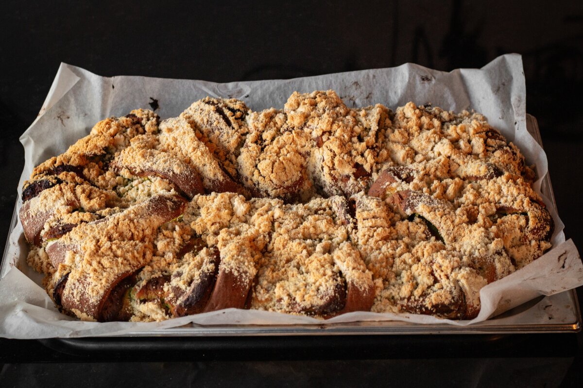 nisujahu, piim, pärm, sool, suhkur, muna, või, pistaatsiakreem